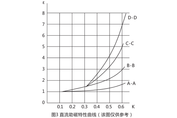 3.继电器的直流助磁特性曲线(如图3)E=f(K)应能进行分段调整;
