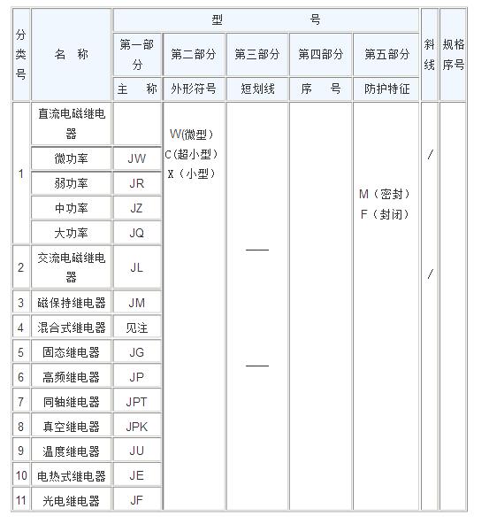 国内继电器的规格号由型号和规格序号二部分组成。型号与规格序号之间用斜线分隔,规格序号不能单独使用。