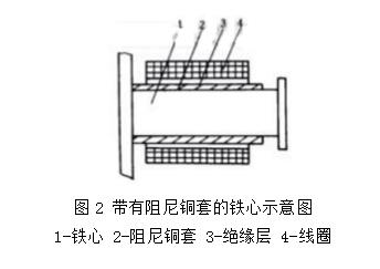 而当继电器断电时,磁通变化量大,铜套阻尼作用也大,使衔铁延时释放而起到延时作用。因此,这种继电器仅用作断电延时。