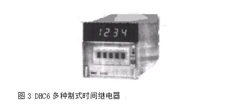 DHC6多种制式时间继电器采用单片机控制,LCD显示.具有9种工作制式、正计时、倒计时任意设定、8种延时时段、延时范围从0.01s~999.9h任意设定、键盘设定,设定完成之后可以锁定按键.防止误操作。可按要求任意选择控制模式,使控制线路最简单可靠。其外貌如图3所示。
