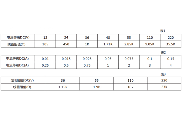 4、线圈功耗:电压型≤1.5W,电流型≤0.1W,复归电压≤2W