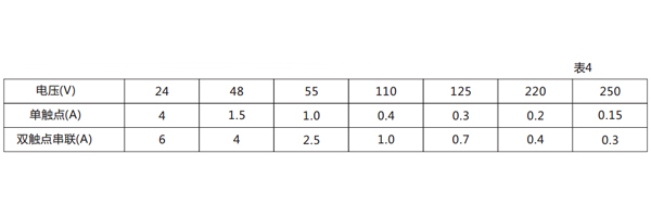 DC当L/R≤40ms,250V,2A,50W。AC 250V,5A(COSφ=0.4)500VA。 如果增加触点断开容量可按表5内数据将触点串联。