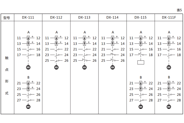 五、DX-111F信号继电器的触点规格