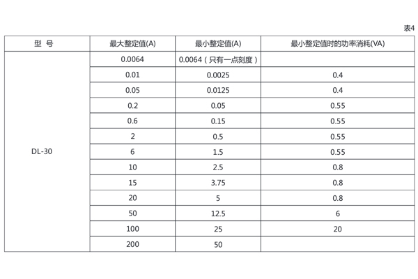 14.功率消耗在最小整定值处,继电器的线圈所消耗的功率不超过表4的数据。
